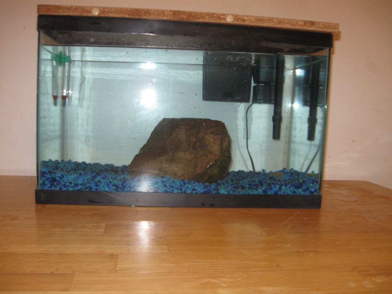 Then a few weeks ago, she went fishing with her dad and younger sister in a lake next to our little village. She brought a terrarium and scooped up two tiny little catfish, very newly hatched! So she got her wish! Her dad fitted the fish tank with blue pebbles (blue is her favorite color) and put a large rock from our garden in it. The catfish love to stay under the rock. We needed a pump/filter and pretty soon we got an aerator too, as well as a sucker fish and couple of live plants. We still need to get a proper lid and maybe a few more fish.
